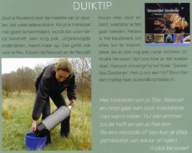 Hier onder vind je een knipsel uit Duiken met zijn tip, waar hij precentje voor kreeg.